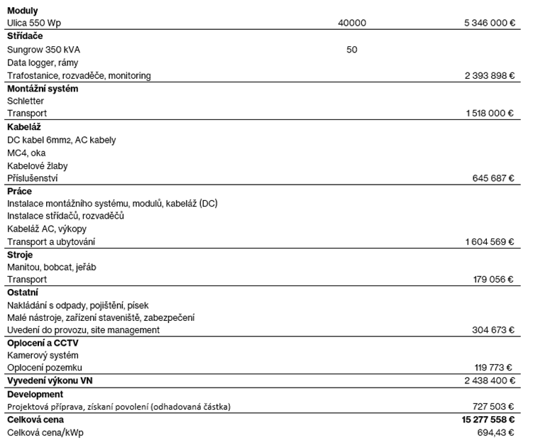 Zde je ukázkový rozpočet pozemní solární elektrárny: