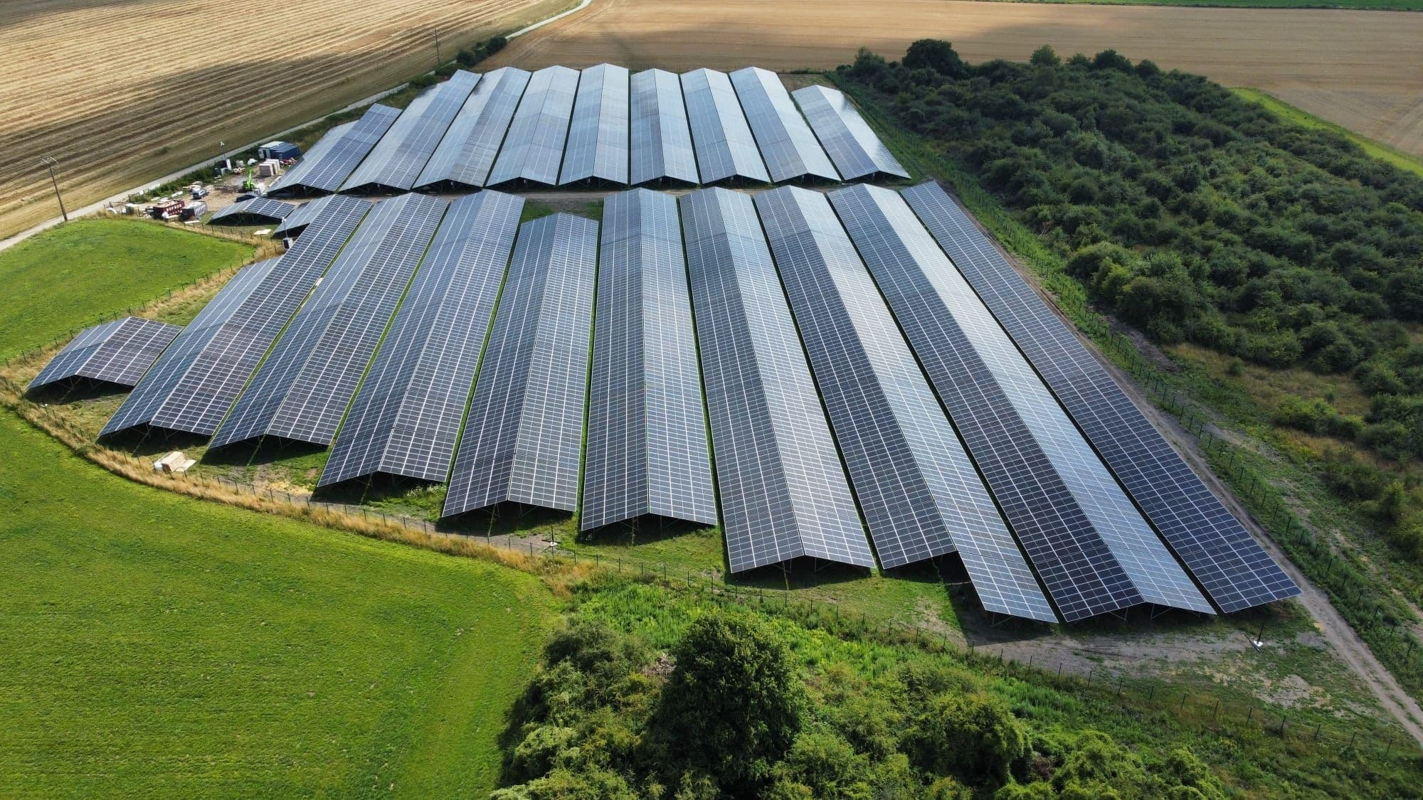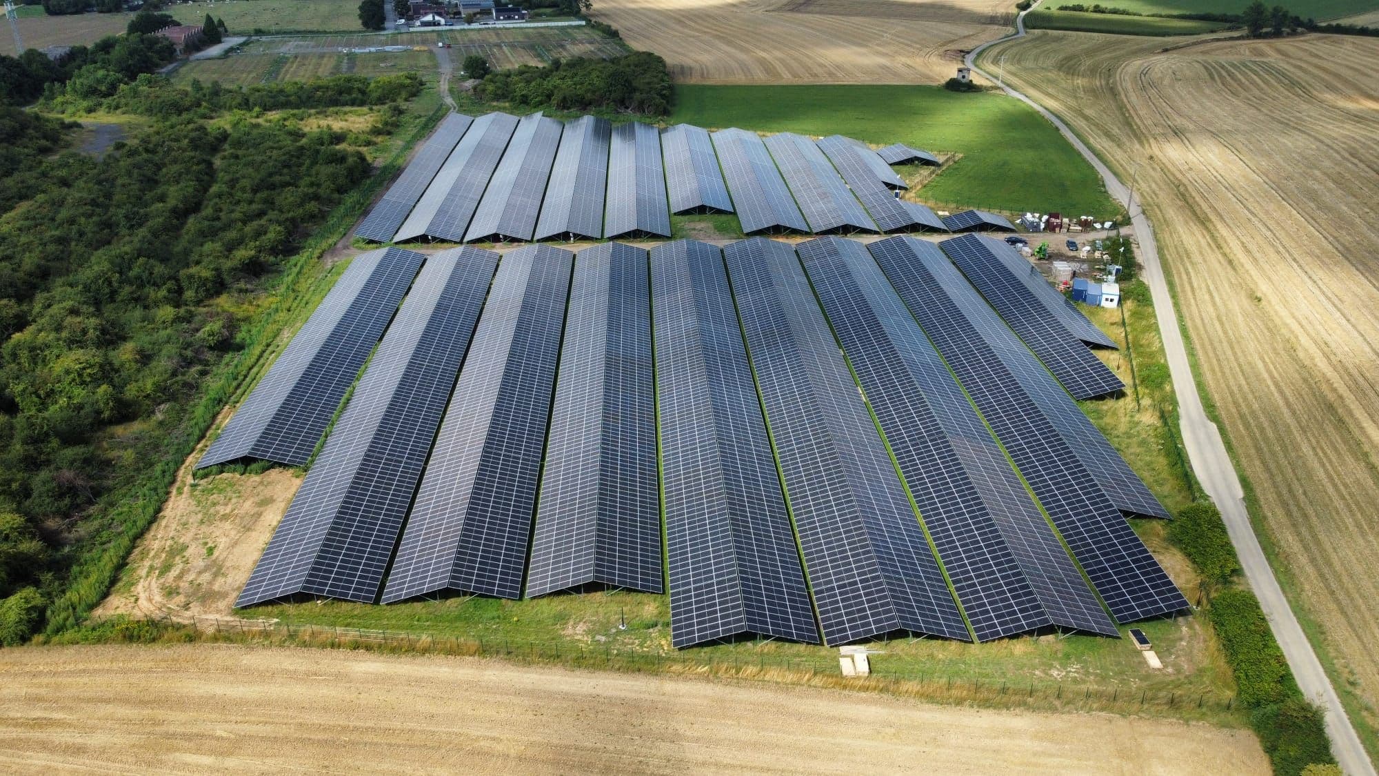 Installation of mounting system, photovoltaic modules, and electrical installation of DC cabling. Ramming.